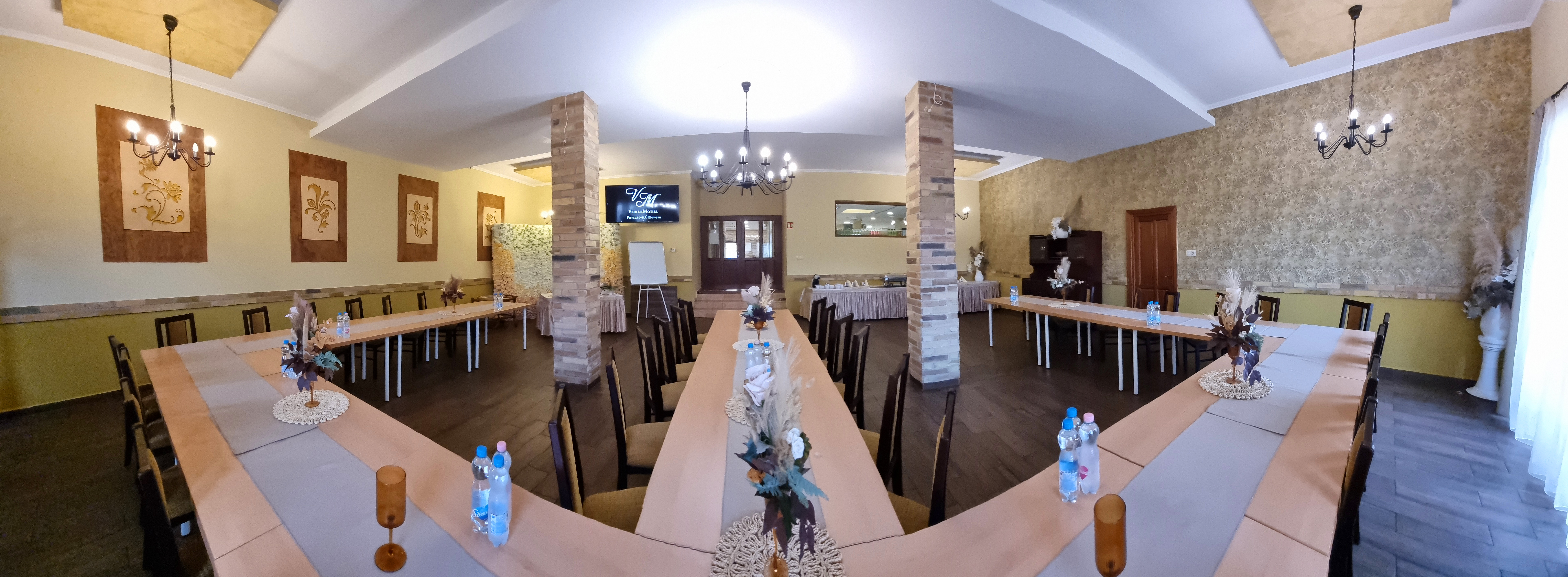 - Technika: flipchart, 55”-es prezentációs televízió, vezeték nélküli mikrofon, hangerősítés